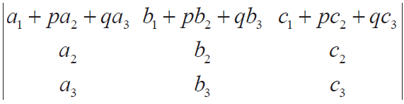 If, to each element of any row (column) of a determinant the equi-multiples of the corresponding entries of one or more rows (columns) are added or subtracted, then the value of the determinant remains unchanged.
