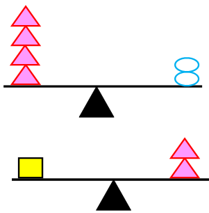 In the figure above, there are two balance beams that have triangles, circles and squares on them. Both beams are fully balanced. How many circles are needed to balance 70 squares ?