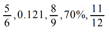 Hence the required order is 11/12, 8/9, 5/6, 70%, 0.121
