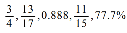 Hence the required order is 0.888, 11/15, 3/4, 13/17, 77.7%