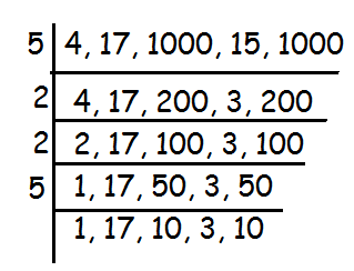 L.C.M = 5 x 2 x 2 x 5 x 17 x 10 x 3 x 10 = 510000