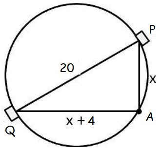 A pole has to be erected at a point on the boundary of a circular ground of diameter 20 m in such a way that the difference of its distances from two diametrically opposite fixed gates P and Q on the boundary is 4 m. Is it possible to do so? If answer is yes at what distance from the two gates should the pole be erected?