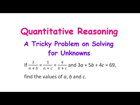 If 3/(a + b) = 5/(a + c) = 4/(b + c) and 3a + 5b + 4c = 69, find the values of a, b and c.