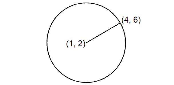 The radius of the circle above is the distance between the center (1, 2) and the point (4, 6) on the circle.