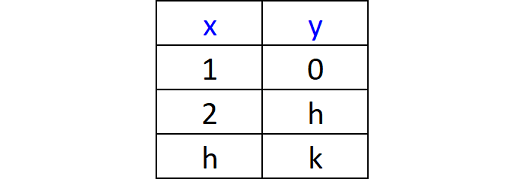 From the table, if x = h, y = k.