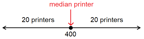 Since there are already 20 printers on the right side of the median, there must be 20 printers on the left side also. Including 1 printer at the median, we have 41 printers in all.