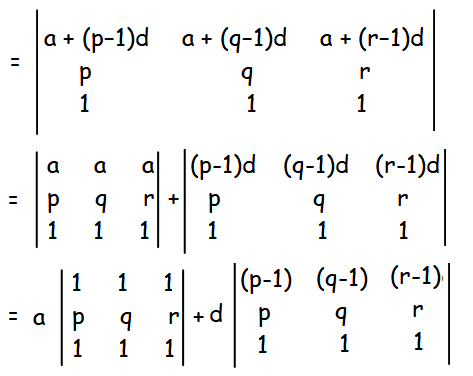 ap = a + (p - 1)d -----(1) aq = a + (q - 1)d -----(1) ar = a + (r - 1)d -----(1) |