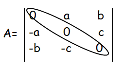 Write the general form of a 3 × 3 skew-symmetric matrix and prove that its determinant is 0.