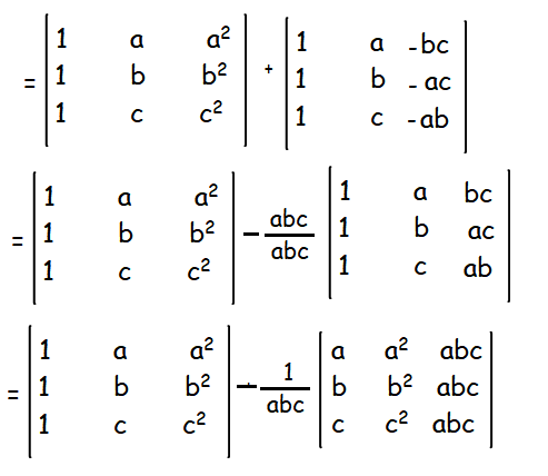 Now let us factor out a,b and c from 1st, 2nd and 3rd row respectively.
