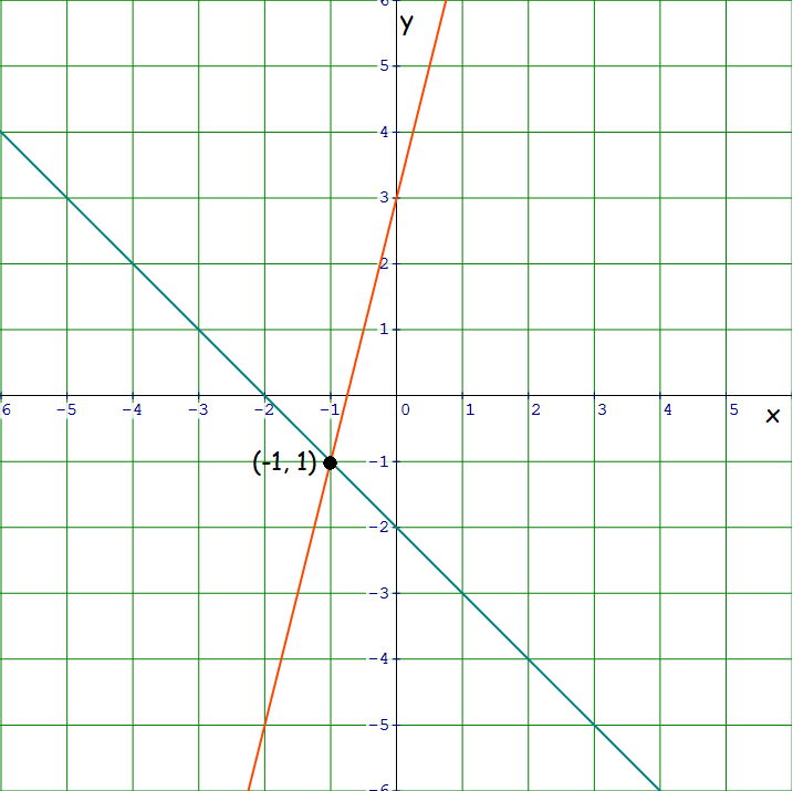 At the point of intersection, x-coordinate will represent the value of x and y-coordinate will represent the value of y of the given system of linear equations.