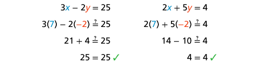 Check that the values x = 7 and y = -2 satisfy both the equations.