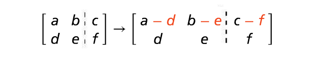 Add elements of a row to (or subtract them from) elements of another row. This produces a new row, which you can use to replace one of the two rows you just combined.