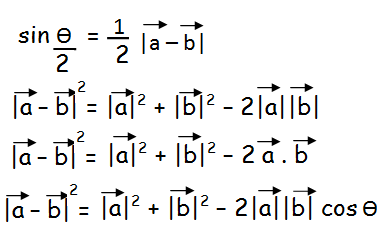 sin(θ/2) = (1/2)|a vector - b vector| ----(1)