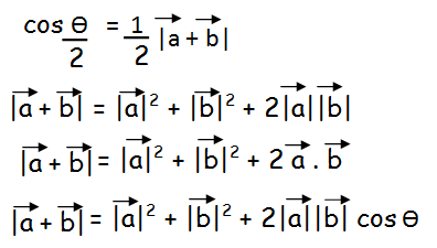 cos(θ/2) = (1/2)|a vector + b vector| ----(2)
