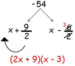 Now we have to divide the two factors +9 and -6 by the coefficient of x2, that is 2.