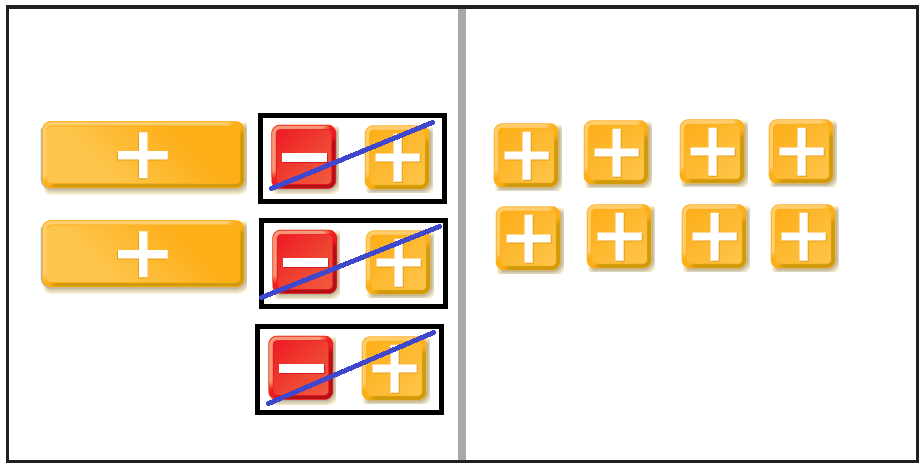 Identify and remove zero pairs on each side of the mat.