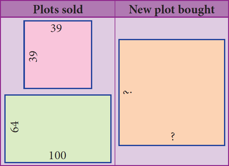 There are two plots, in which, a square plot of side 39 yards and a rectangular plot of dimensions 100 yards length and 64 yards width. Both the plots are sold and acquired a new square plot of the same area. Find the length of side of the new plot.