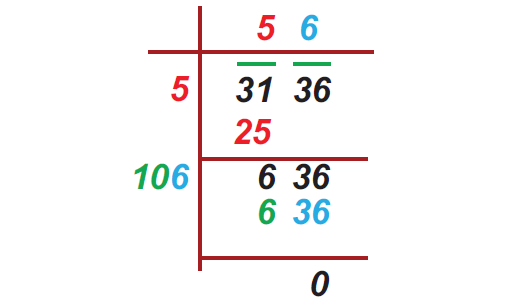 When we come across numbers with large number of digits, finding their square roots by factorisation becomes lengthy and diffi cult. Use of long division helps us in such cases. Let us look into the method with a couple of illustrations.