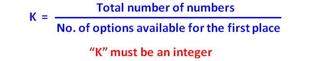 So, each one of the nine different digits (1, 2, 3, 4, 5, 6, 7, 8, 9) will come at the thousand's place, hundred's place, ten's place and unit's place 336 (= K) times in the 3024 numbers formed using the nine different digits mentioned above.