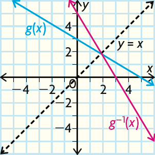Switch the coordinates to find the two points (0, 5) and (3, 0) of g-1(x). Notice that they were the intercepts.