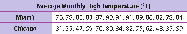 Find the range of the data. Subtract the least value from the greatest value in each data set.