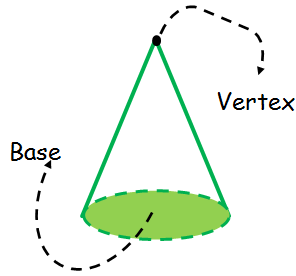 A cone is a solid with circular base curved by a curved surface to a single vertex.