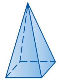 A pyramid is also a polyhedron with one base that is any polygon. Its other faces are triangles.