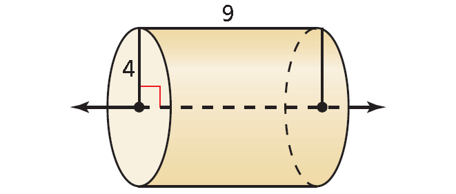 (a) The solid is a cylinder with a height of 9 and a base radius of 4.