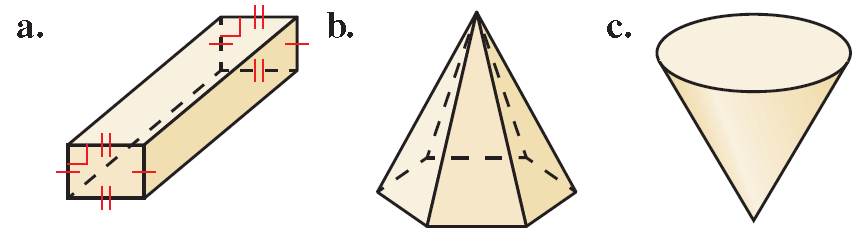(a) The solid is formed by polygons, so it is a polyhedron. The two bases are congruent rectangles, so it is a rectangular prism.