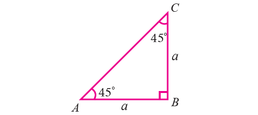 Hence, we can find the trigonometric ratios of angle 45° from the right triangle ABC.
