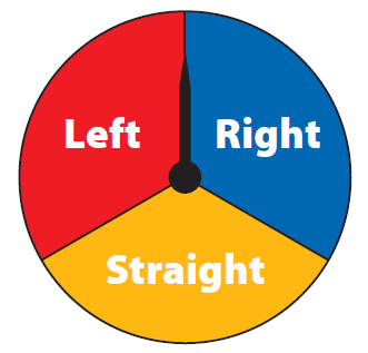 Use a spinner divided into 3 equal sectors to represent the three directions as shown.