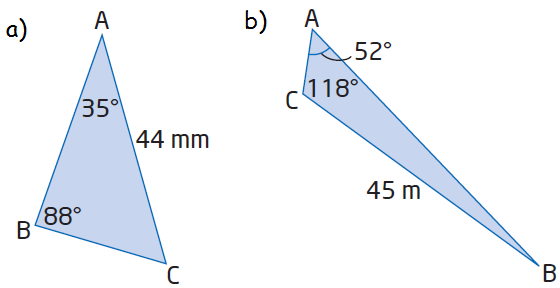 a/sin 35 = 44/sin 88 = AB/sin 57