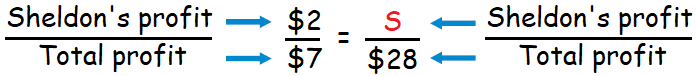 Therefore, if they make a total profit of $28, then Sheldon makes a profit of $8.
