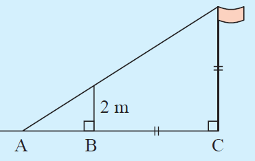 Given that BC is 3 m longer than AB, find the height of the flag pole.