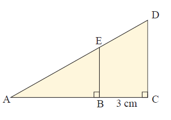 AB is 2 cm longer than BE. DC is 3 cm less than twice the length of BE.