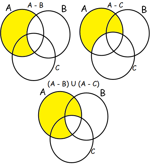 Verify A − (B n C) = (A − B) U (A − C) using Venn diagrams.