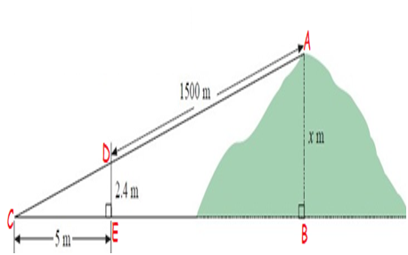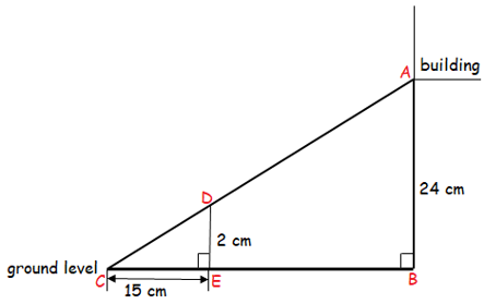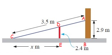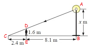 DE = 2.4 m, EC = 5 m, AB = x cm