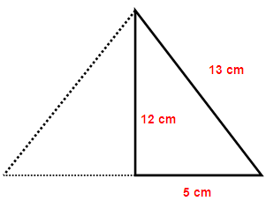 From the diagram we know that slant height is 13 cm, radius is 5 cm and height is 12 cm.