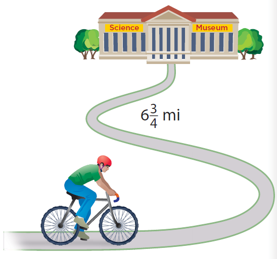 From the picture shown below, the distance to the science museum is 6 3/4 miles.