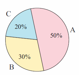 The pie chart represents the sales of three different types of soap powders, A, B and C.