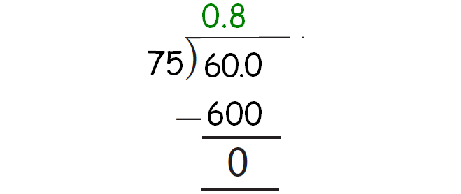 In 600, there are eight 75's which is 600. So, subtract 600 from 600.